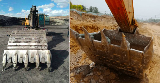铲斗对比对比沃尔沃EC360BLC(左)、山东凯发k8娱乐E6360F挖掘机(右)