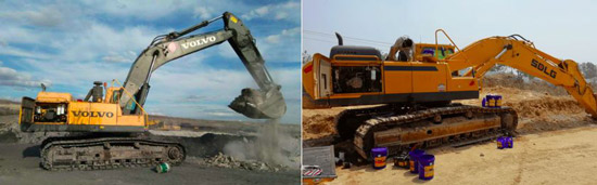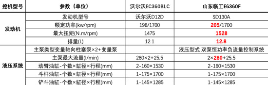 发动机对比对比沃尔沃EC360BLC(左)、山东凯发k8娱乐E6360F挖掘机(右)
