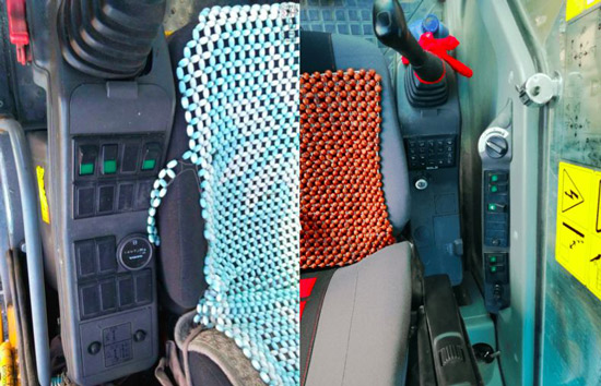 驾驶室对比沃尔沃EC360BLC(左)、山东凯发k8娱乐E6360F挖掘机(右)