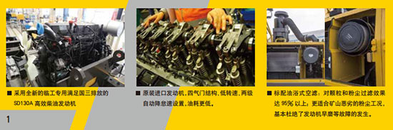 发动机是驱动机体运转和工作的动力核心,E6360F采用满足国三排放的 SD130A 高效柴油发动机,有效降低排放量、大幅提高作业性能和燃油效率。
