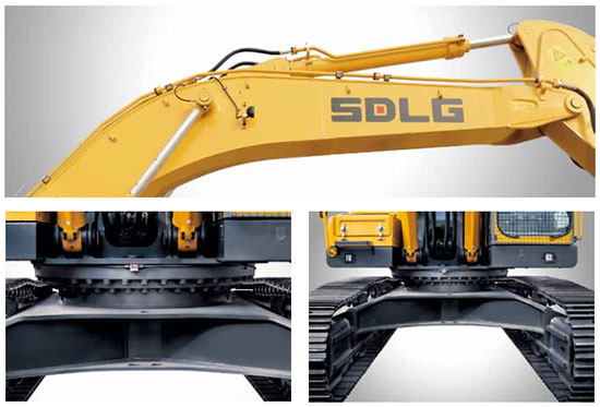 E6360F标配加强 HD 型大、小臂,由优质钢精制而成,关键部位应用高强度钢,重要部件由焊接机器人焊接完成,受力大的连接部位及易损部位进行特殊加强设计。其上下车架均采用加强型设计,适应恶劣工况,使整机具备更好的稳定性、可靠性。